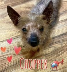 Initial Bio: 10/21/25 Today we welcome another SUPER SENIOR to our rescue. Let’s give a HUGE UNITED YORKIE RESCUE WELCOME to CHOPPER! No, he is not a helicopter, but he could be if he had one more jumbo sized ear! As you can see, Chopper didn’t come to us in the best condition. He’s way too skinny, his mouth is pretty yucky and he has lost a lot of his hair. To boot, he lost his home of 13 years where he has lived since he was a puppy. Sounds like a really bad start …… but little does Chopper know that today is a turning point …… and his BEST DAYS now lay ahead of him.